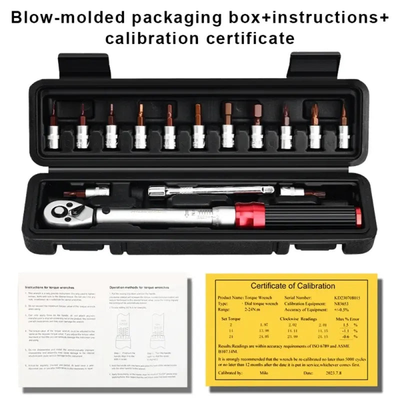 Lightweight and compact, this torque wrench set is perfect for taking on rides or storing in a home workshop. Convenient for on-the-go adjustments.