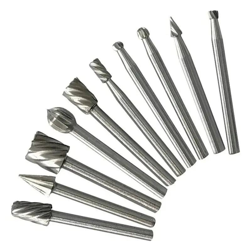 This set includes 10 different rotary files, each designed to handle a variety of tasks, from sanding and grinding to carving and engraving.