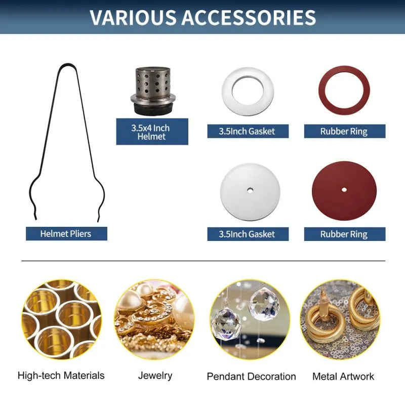 The 4L casting chamber is engineered with a large capacity to cater to diverse casting requirements. Its spacious interior is designed to handle various casting tasks effectively. It accommodates the largest helmet size of 5″ by 7″, providing ample space for conducting multiple casting procedures or accommodating larger molds. This generous capacity ensures versatility in the casting process, allowing for efficient and comprehensive jewelry production without compromising on quality or size limitations.
