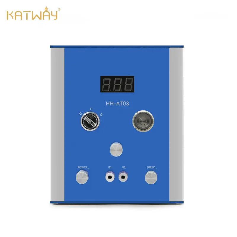 The machine features an easy-to-operate knob design with a toggle button allowing for mode switching among three different functions. ‘G’ stands for engraving, ‘P’ denotes polishing, and ‘D’ represents drilling. Simply turning the knob facilitates mode conversion. Additionally, the control box includes a power button regulating the stroke power of the engraving handpiece. Furthermore, the speed button controls the frequency of strokes, enabling users to fine-tune the speed according to their preferences or specific requirements.