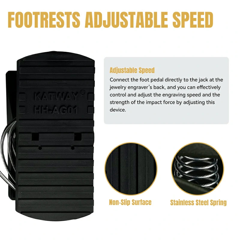 Hand engraving is often used in conjunction with engraving machines, and our high-performance pneumatic engraver will provide the perfect engraving experience. In addition, when combined with the professional foot pedal, you can easily adjust the working frequency of the engraving handle to engrave patterns with varying depths and layers, ultimately achieving your ideal engraving style!