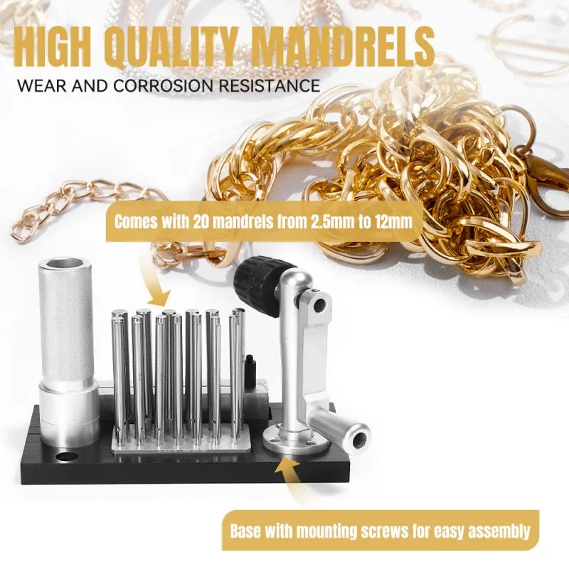 The Jump Ring Maker is a specialized device tailored for jewelry processing. Its primary function involves winding wire into rings of various sizes and then precisely cutting them. This tool streamlines the intricate process of crafting jump rings, enabling jewelers to create customized rings with specific measurements and shapes, ensuring accuracy and efficiency in jewelry design and production.