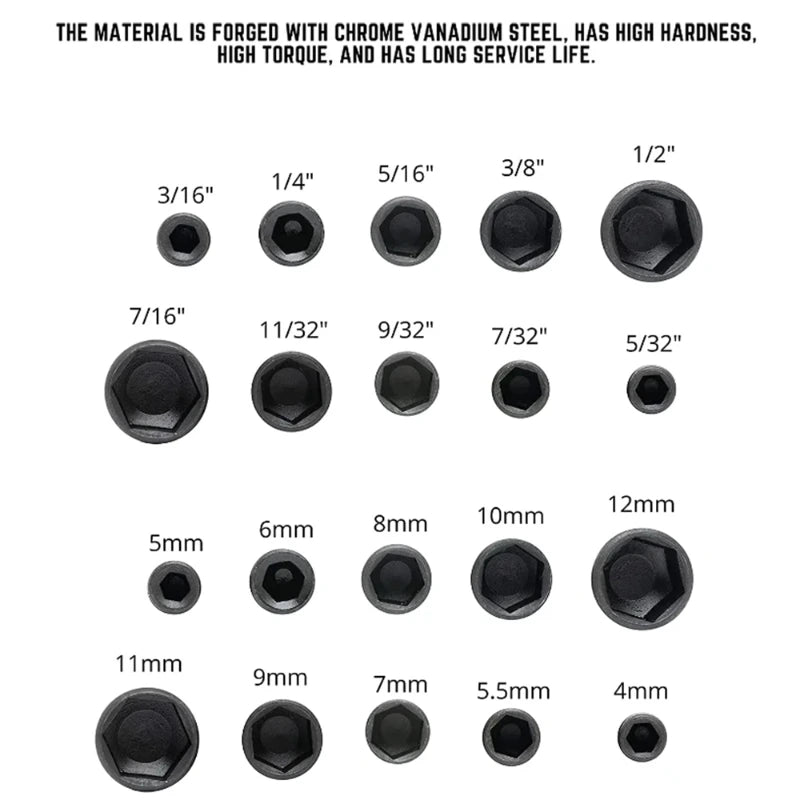 Each wrench features chamfered edges for smooth insertion into hexagonal fasteners. This design helps reduce wear on both the tool and screw head, while improving grip and precision in tight spaces.