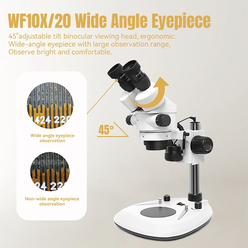 45° adjustable tilt binocular viewing head, ergonomic Wide-angle eyepiece with large observation range,Observe bright and comfortable.