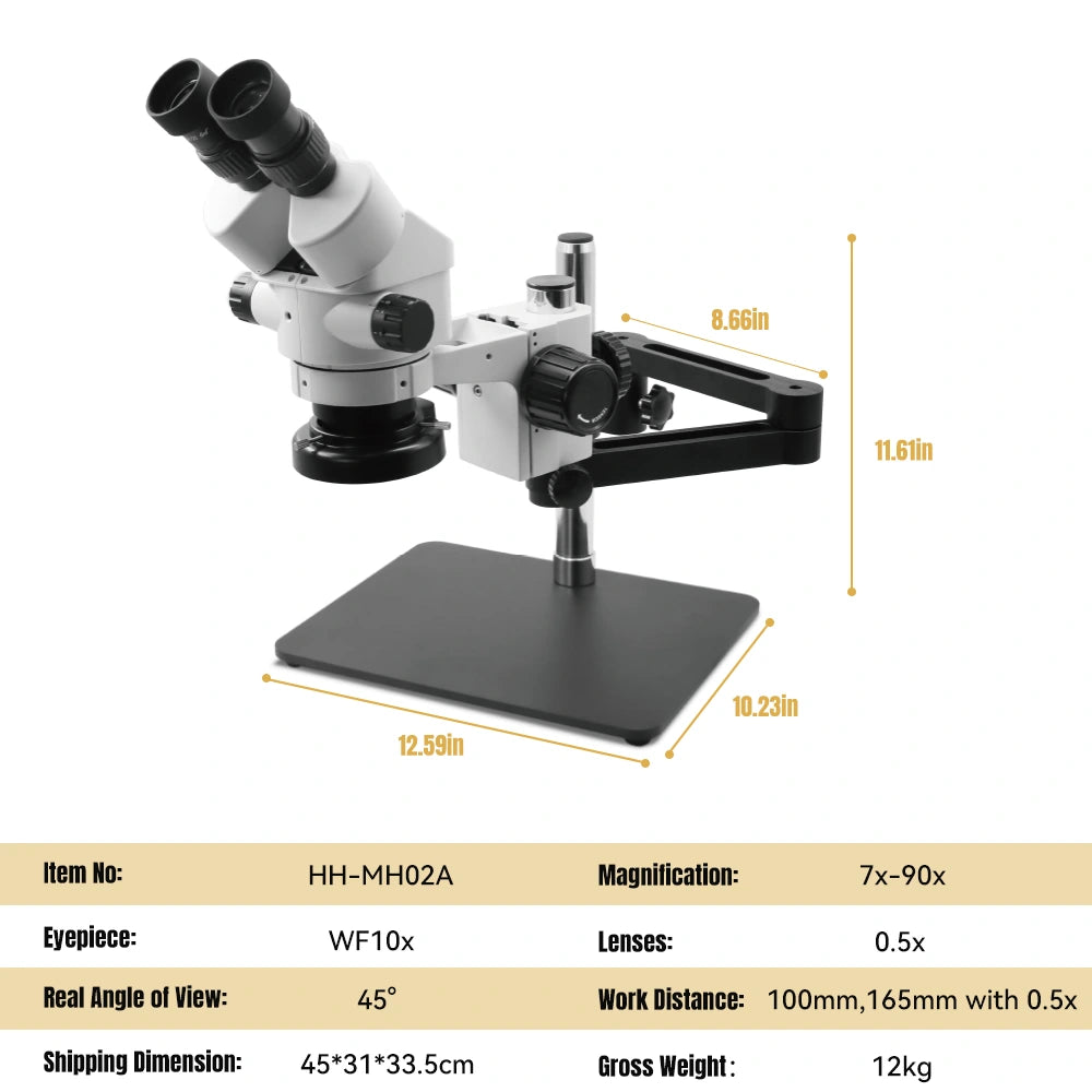This microscope is designed with binocular stereo imaging technology, supporting 7X-45X continuous zoom and interpupillary distance adjustment.