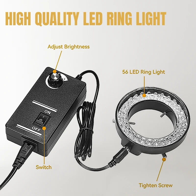 The stereo microscope is made of sturdy Al-Zn alloy with high strength and premium optical glass lenses to provide a high-resolution image.