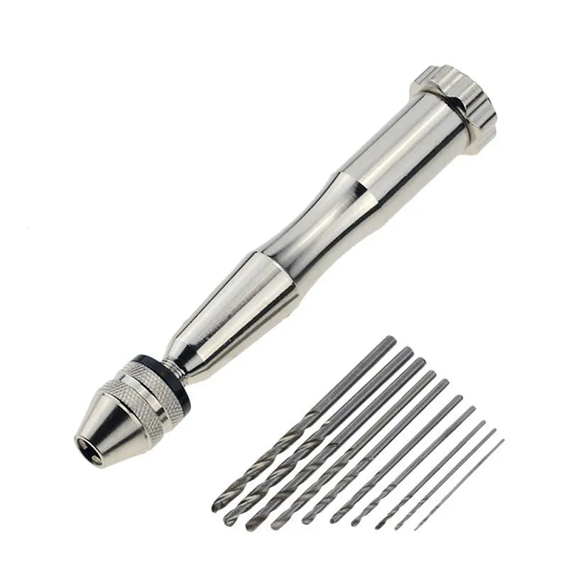 This hand drill is made of high-quality stainless steel, rust-proof, sturdy and durable. With silver finish and non-slip design, it looks very delicate and easy to turn. The twist drill bit is made of high-speed steel.