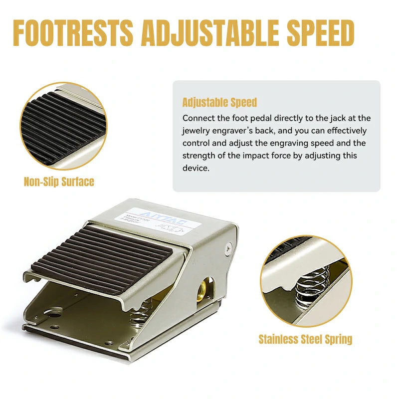The adjustable speed pedal offers a non-slip surface for stable and easy control, complemented by a high-quality and durable stainless steel spring.