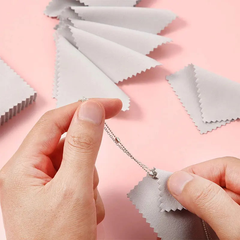 This type of cloth can effectively remove oxide layers, tarnish and stubborn stains to restore the luster of jewelry and metal surfaces. However, this cloth is not suitable for gold-plated jewelry, pearls, etc., so as not to damage the sensitive surface.