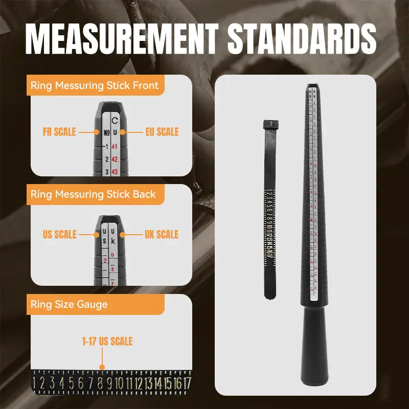 Our Ring Measuring Stick offers comprehensive measurement standards, encompassing the FR, EU, US, and UK scales. This essential tool ensures accurate determination of ring sizes according to international standards, guaranteeing precise jewelry sizing and fitting. Whether you’re a jeweler, designer, or retailer, this measuring stick provides convenience and reliability in achieving the ideal fit for customers globally.