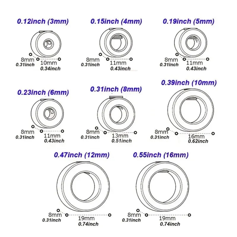 This set includes a variety of retaining rings designed to securely hold drill bits in place, ensuring stability during drilling and preventing slippage.