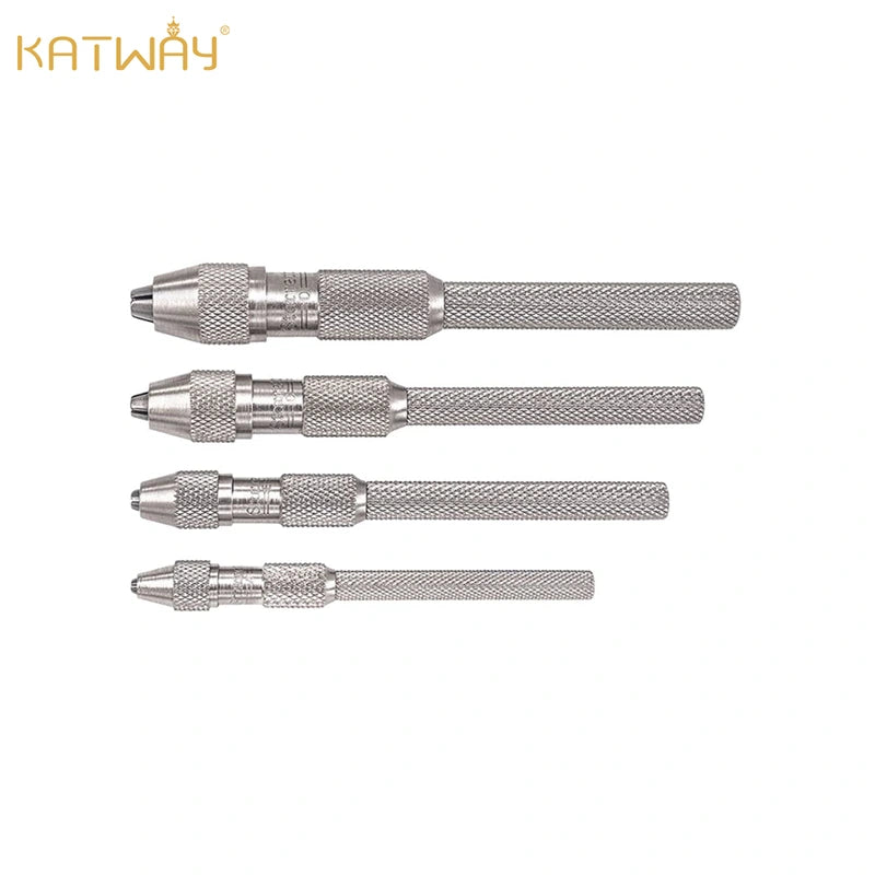 The reduced handle size of the pin vise facilitates easy rotation between thumb and finger when filing small workpieces, increasing operational flexibility.