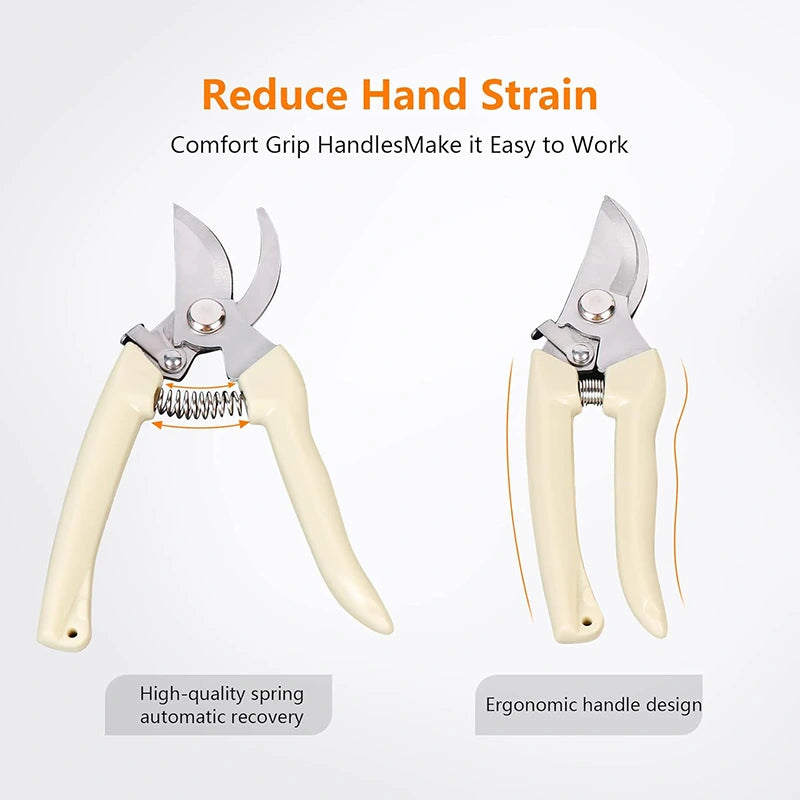 The stainless steel blade is tightly combined with the plastic handle, and the low-friction coating effectively prevents rust, increases the durability and service life of the scissors, and is suitable for various gardening pruning tasks.