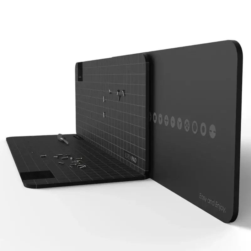 Magnetic Screw Pads are specially designed work mats that help organize and secure small metal parts, such as screws and bolts, during electronics repair or assembly. Featuring a magnetic surface, these pads prevent tiny components from rolling away or getting lost, making them ideal for technicians and DIY enthusiasts. The pad often includes labeled sections to categorize parts according to their origin in a device, improving workflow and reducing the risk of mistakes during reassembly.